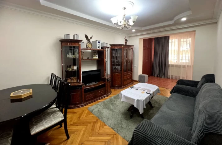 A 5-room apartment (140 square meters) is for sale in Arabkir, on Shahsovaryan Street (next to Komitas Avenue) with property and appliances. There is a stone garage in the yard.