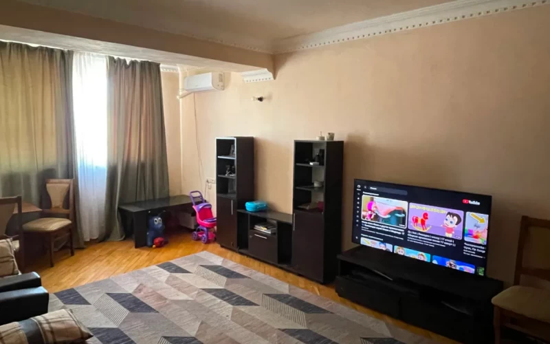 The apartment is 80 square meters, completely renovated, it is sold with furniture and appliances. There is a beautiful view of Mount Ararat from the windows, there is no need to close the curtains in the evening, because the window offers a beautiful view of the city and not of houses. Heating is carried out through an individual heating system. It has an open balcony where you can sit comfortably with your family. It has its own underground parking. It has an uninterrupted elevator, the yard is well-kept, it has a playground