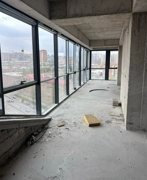 An open balcony, equipped with storage, has a beautiful view of Davit Anhaght Park