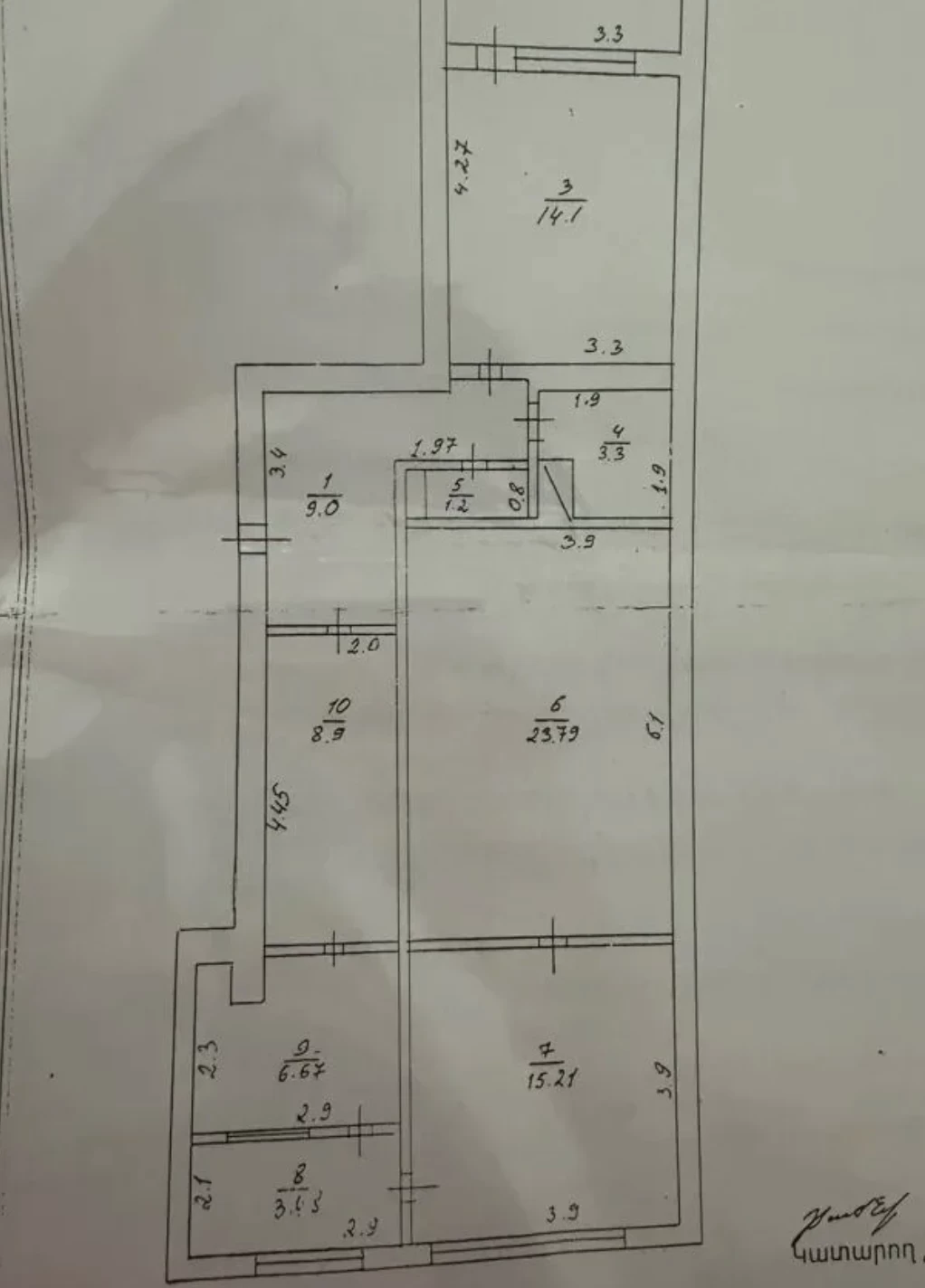 A 3-room apartment is for sale on Mamikonyants street (FORMERLY A PUBLIC HOUSE), it is privatized, on the 2nd floor of a 9-story building. The total area is 54 sq/m, the ceiling height is 2.8 m. It is. There is a rather large closet (chulan) in the corridor outside the apartment. An intercom is installed at the entrance of the building. The apartment is bright and sunny, located on the first line. There is a heating system, the exterior door is made of iron, with European windows, the water pipes are internal, copper wiring, the bathroom is combined. Schools, kindergarten, supermarkets, pharmacies and other necessary shops are nearby.