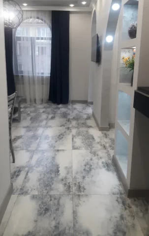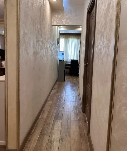 Բնակարանը վերանորոգված է հիմնականում, մնացել է լատեքս կամ պաստառ ամրացնել պատերին՝ ըստ ճաշակի, լուսամուտները եվրո, հատակը պարկետ, խոհանոցը մետլախ, սանհանգույցը լիովին վերանորոգած։ 77,6 քմ