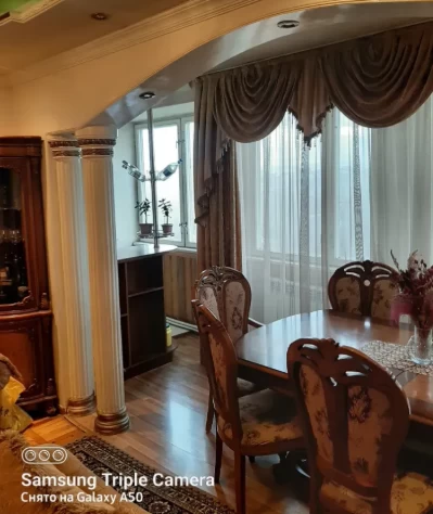 В квартире 3 полноценные спальни, удобная кухня, отдельный рабочий уголок, 2 гардеробные. Все двери и полы выполнены из натурального дуба. Окна утеплены.