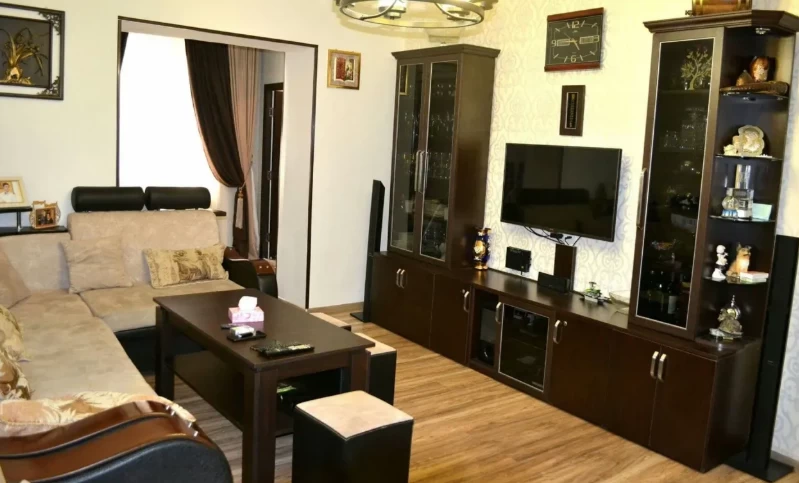 В квартире сделан ремонт, имеются все удобства: газ, электричество, вода, отопление, полная кухонная мебель. Ванная и туалет с идеальным ремонтом